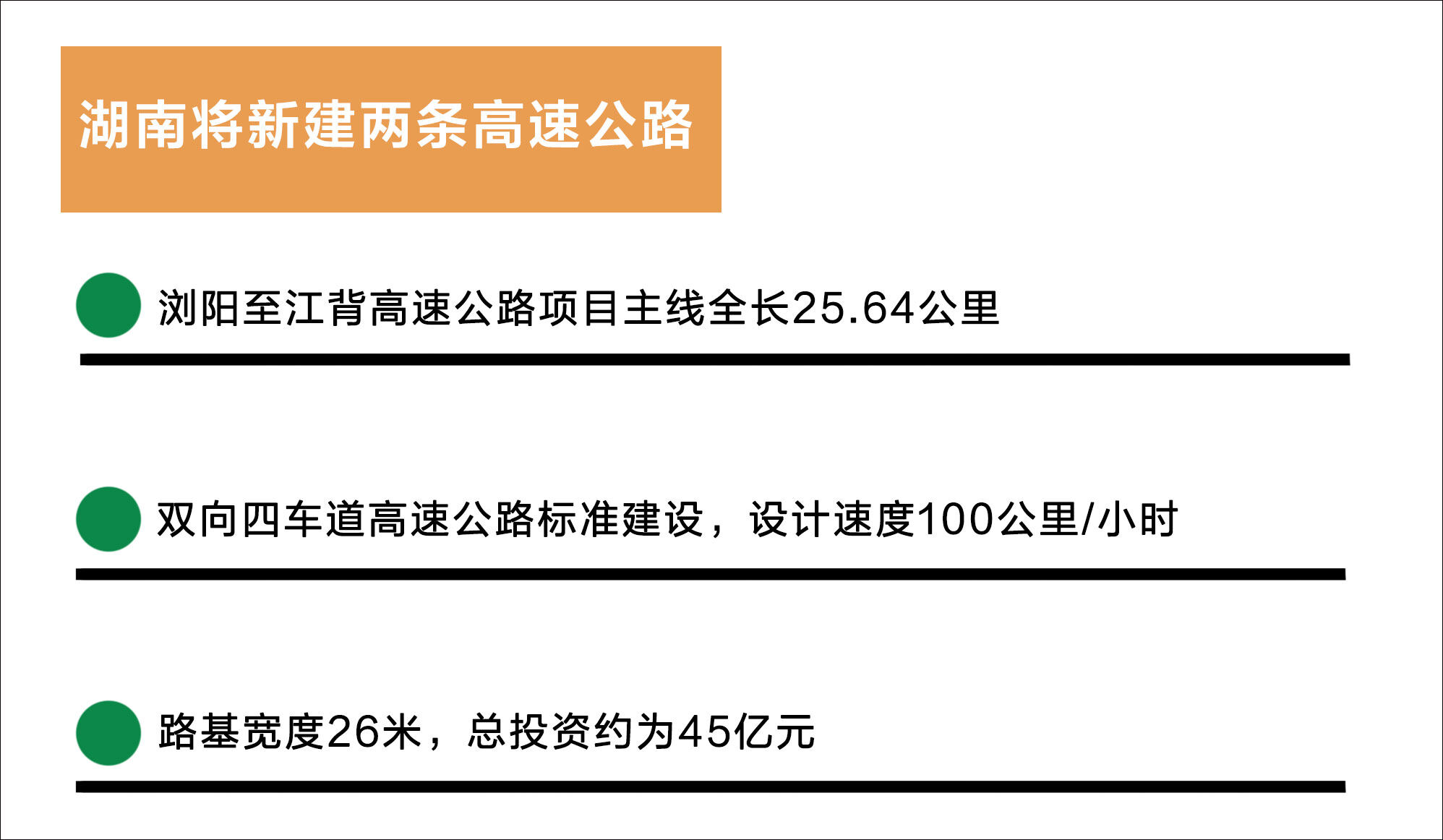 2022年8月3日,湖南建设投资集团有限责任公司宣布中标茶亭至绕城、浏阳至江背两条高速公路建设项目,总投资约98亿元。据悉,这两条高速公路均力争2022年内开工。