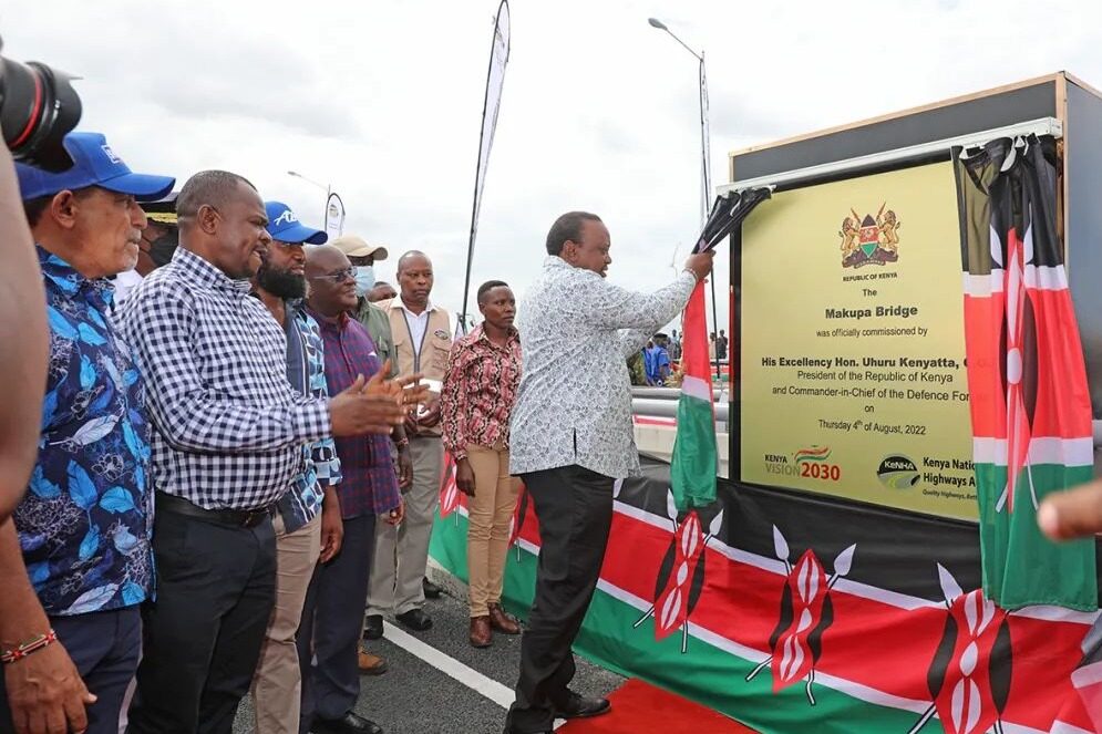 2022年8月4日,肯尼亚总统肯雅塔出席蒙巴萨马库帕大桥项目通车仪式、蒙巴萨新建KOT油码头项目正式运营仪式,并为蒙巴萨米轨通勤项目开工纪念碑揭幕及剪彩。肯尼亚交通部部长马查里亚,中国路桥副总经理兼肯尼亚办事处总经理李长贵陪同。
