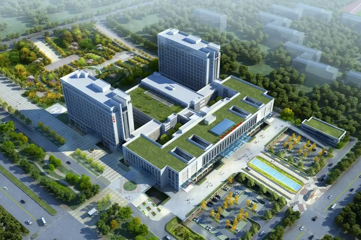 The housing construction project of the North Jiangsu Health Management Center of Zhongshan Hospital makes full use of the existing 12 existing buildings on the Maker Park plot, and reasonably transforms them into housing suitable for hospital functions. The total number of beds in the Maker Park plot after the renovation is not less than 680. On the basis of the original Maker Park of 7.56 hectares, the project land will be expanded westward and northward by 6.91 hectares, with a total land area of 14.47 hectares. On the newly expanded construction site, the newly added above-ground construction area is about 60,000 m2, and the underground construction area is about 8,400 m2. The scope of the first phase of the project includes: about 121,500 m2 after the expansion of the original building, and a new construction of about 30,000 m2 including the outpatient building, emergency department, fever clinic, power supply switch station, garbage room and sewage treatment station. The scope of the second phase of the project includes: new expert apartments, 1,500 square meters of academician workstations, 3,000 square meters of staff canteen kitchen, 1,000 square meters of staff activity center, and supporting parking garages of about 30,000 square meters.