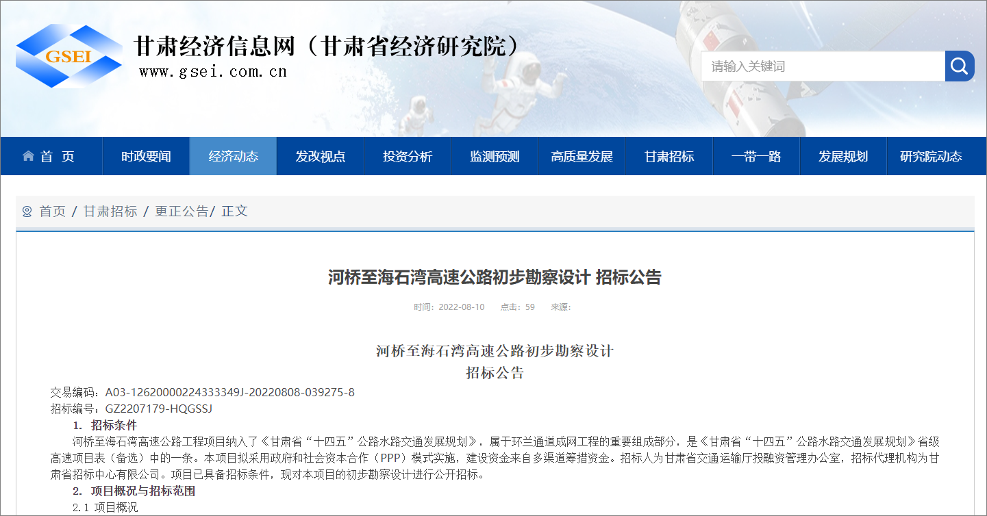 从甘肃公共资源交易中心网站了解到,近日,甘肃有四条公路项目开始勘察设计招标了,四条公路总长243公里。
