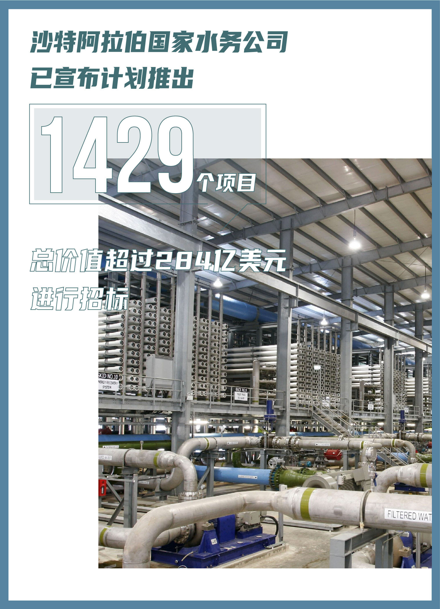 沙特阿拉伯国家水务公司已宣布计划推出1429个项目,总价值超过284亿美元进行招标,使其成为配水行业有史以来最大的一揽子项目。