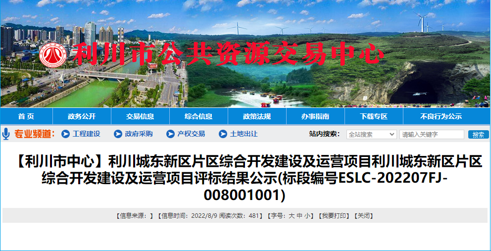 2022年8月9日,湖北利川市公共资源交易中心发布利川城东新区片区综合开发建设及运营项目利川城东新区片区综合开发建设及运营项目评标结果公示,该项目业主为湖北利川振业发展有限公司,项目估算总投资47.75亿元。