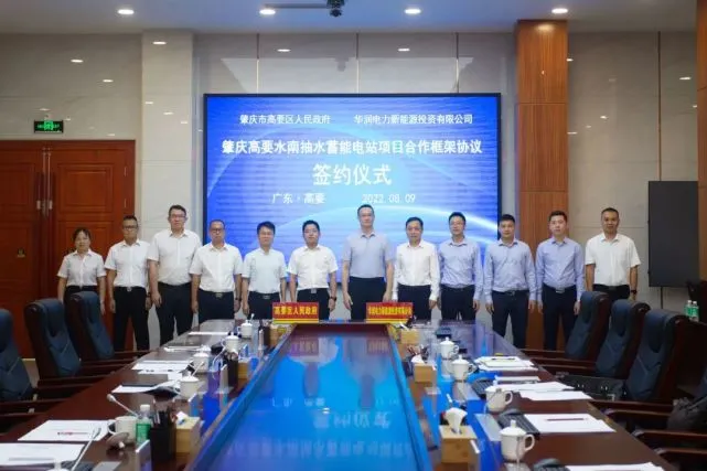 2022年8月9日上午,华润电力广东新能源公司与高要区人民政府签订华润肇庆高要水南抽水蓄能电站项目投资合作框架协议,这是高要区贯彻落实市委市政府加快新能源项目发展,加强现代能源体系建设的重要体现,助力粤港澳大湾区加快构建清洁低碳、安全高效的现代能源体系。