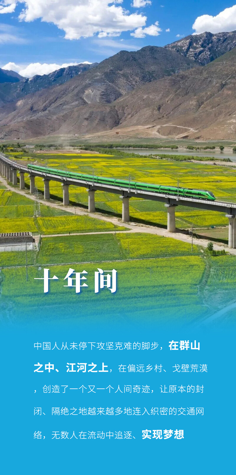 党的十八大以来,中国人民以越是艰险越向前的大无畏气概,向着人迹罕至、环境恶劣的交通空白处挺进,逢山开路,遇水架桥,创造了一个又一个人间奇迹,改变了亿万人的生活。