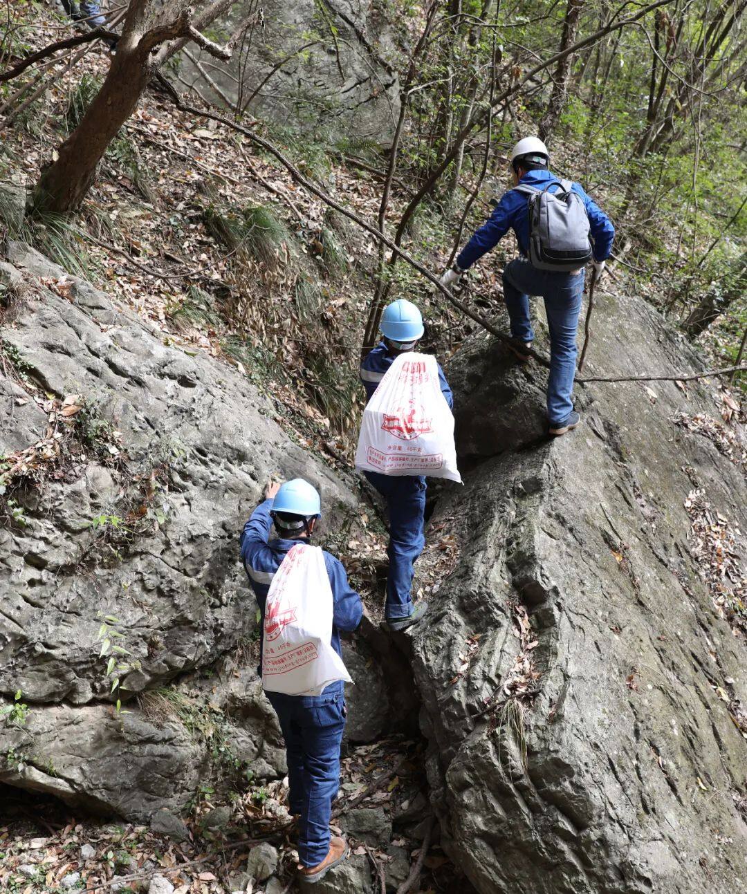“进山施工的途中,有的坡度接近70度,山中没有路,需要抓藤蔓、踩树桩借力向上,布满青苔的崖壁,稍不注意就可能滑倒。特别是N4419塔位,最为险峻,近90度的攀爬悬崖,常规的登山作业,满足不了现场需要。”广东电网能源发展有限公司输电第二公司班队长李志福介绍道。