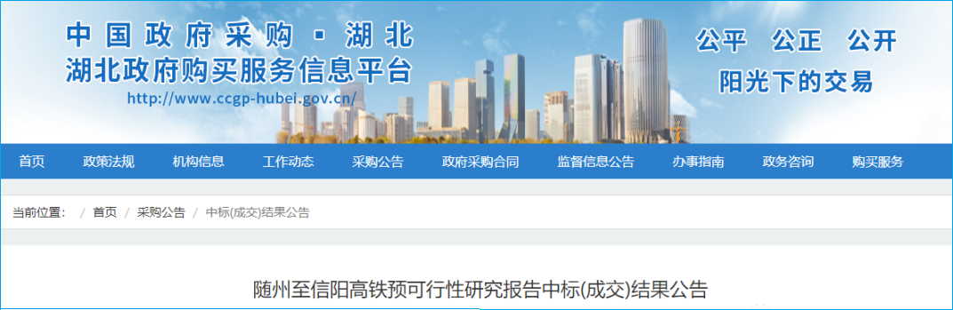 近日,随州至信阳高铁预可行性研究报告中标)结果公告在湖北政府采购网发布,中铁第四勘察设计院集团有限公司中标,中标金额79.8万元。随州至信阳高铁项目预可行性研究工作即将正式启动。该项目在南阳枢纽与南信合高铁联系紧密,中铁四院同时也是南信合高铁的总体设计单位。