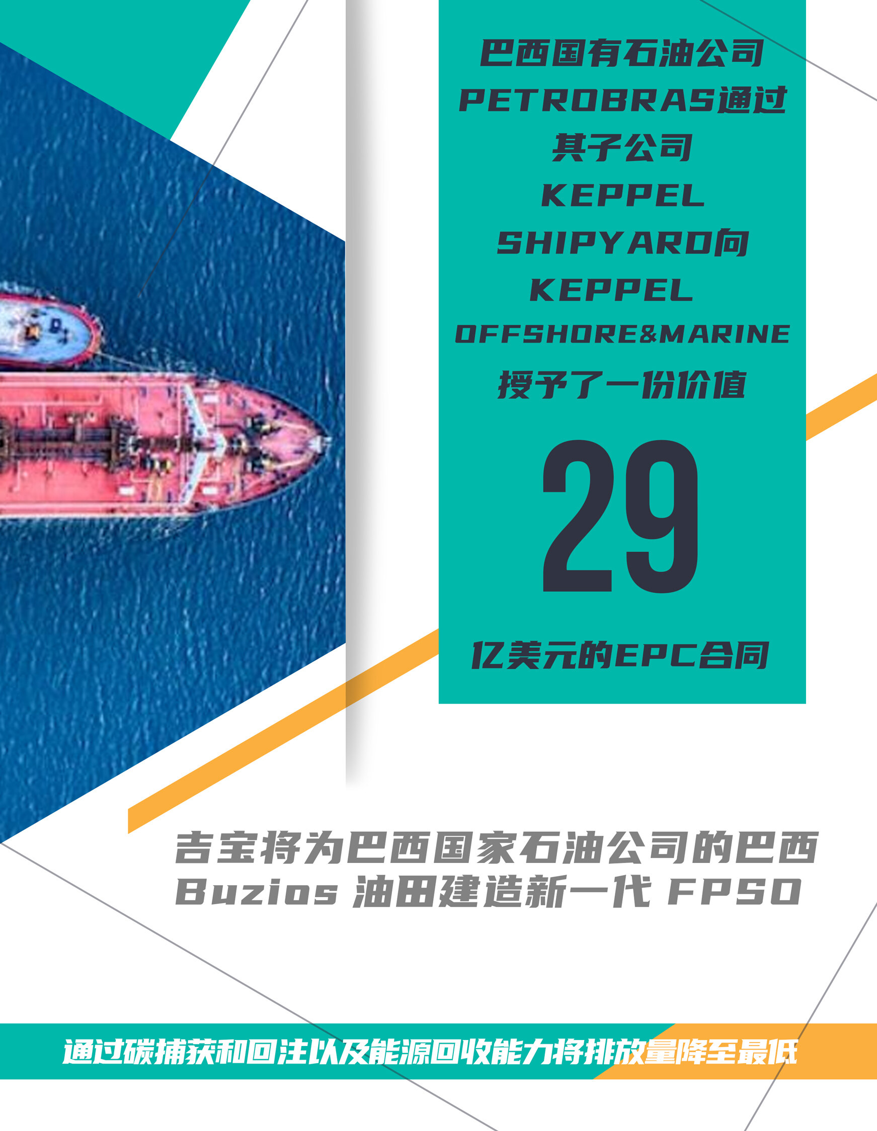 巴西国有石油公司Petrobras通过其子公司Keppel Shipyard向Keppel Offshore&Marine授予了一份价值29亿美元的EPC合同。根据合同,吉宝O&M将为一艘名为P-80的浮式生产、储存和卸油船提供工程、采购和建造。继吉宝船厂目前正在建造的FPSOP-78之后,KeppelO&M将建造P-80作为巴西国家石油公司Buzios油田的第二个FPSO。