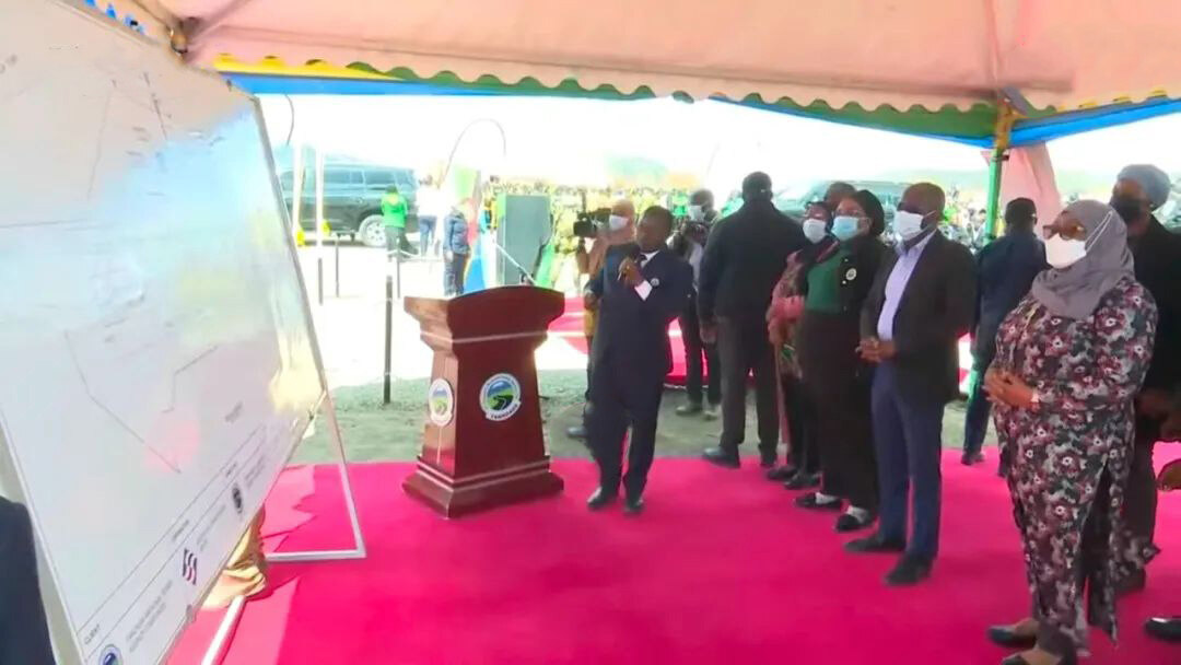 2022年8月12日,坦桑尼亚总统萨米娅·苏卢胡·哈桑到中国电建所属电建市政公司承建的伊岭噶机场升级项目视察,坦桑尼亚公路局局长、伊岭噶省省长及各级政府要员参加仪式。
