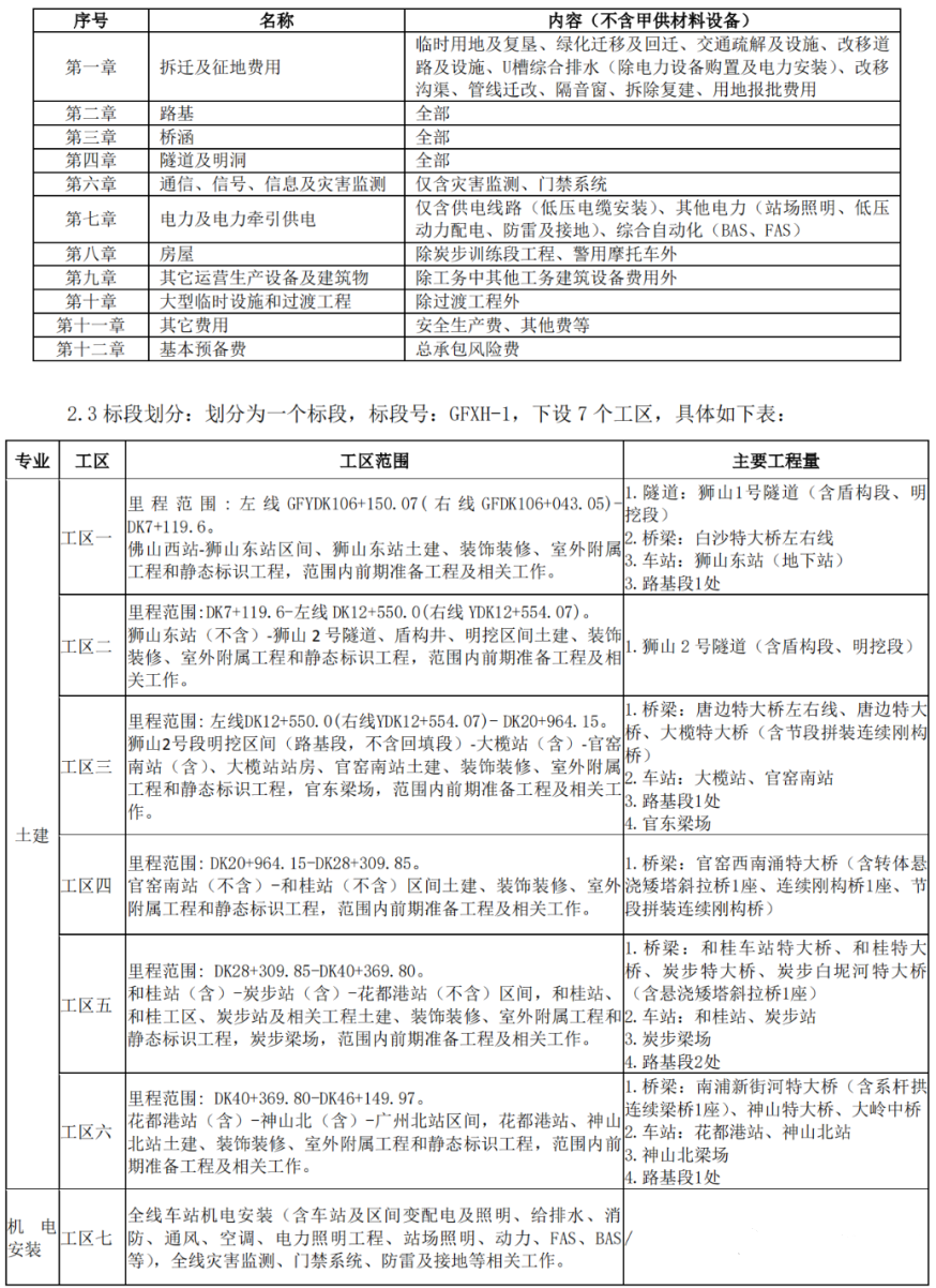 广佛环线佛山西站至广州北站施工总承包项目,具体包括以下内容: