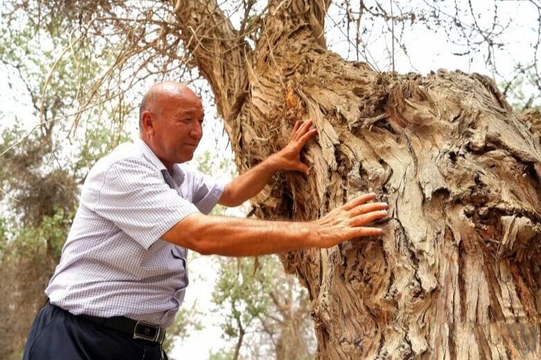 1984年,老穆参加工作成为一名护林员,他第一次离家,搬到了管护站生活工作。“那时我一个月工资只有60多元,管护站也非常简陋,我和另一名护林员一周回一次家,外出巡林就是走路或者骑马,任务是防止砍树、盗猎。”老穆回忆,当时的林场是自营单位,允许砍伐老的胡杨开展木材经营,林场里还有许多牧民,人们的生产生活都依赖胡杨林,大家在里面放牧,生火做饭、冬季取暖都是使用胡杨作为燃料。