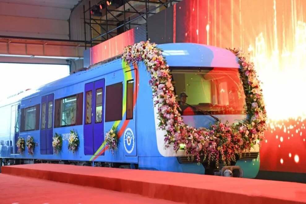 2022年8月18日,中车大连公司在旅顺新厂区隆重举行尼日利亚拉各斯蓝线轻轨电力动车组下线仪式。伴随着响亮的汽笛声,两列动车组正式下线,即将奔赴大洋彼岸,为尼日利亚轨道交通事业发展、增进中尼两国之间友谊作出积极贡献。
