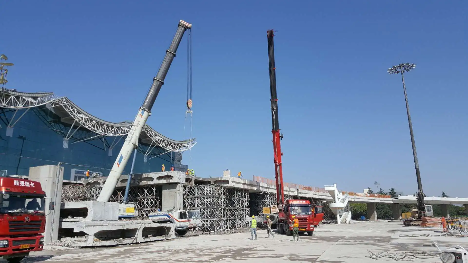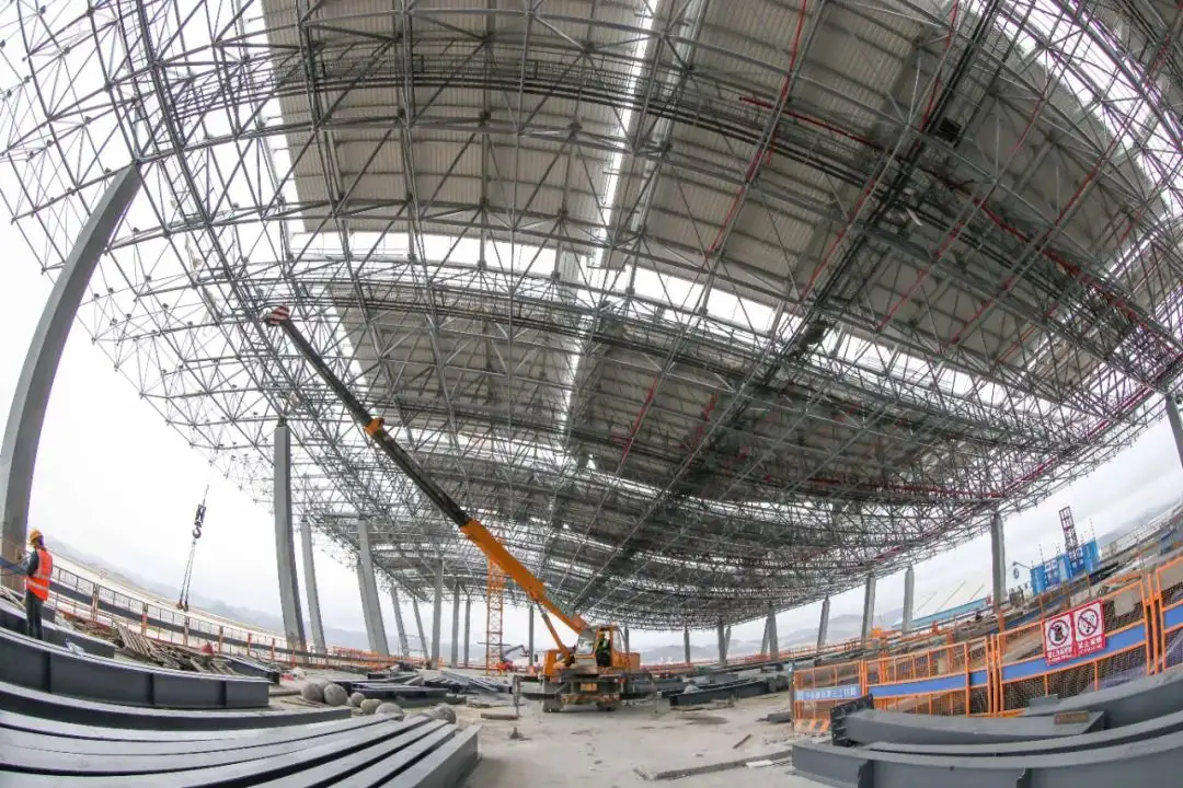 The upper roof adopts a steel structure system, and the lower main structure adopts a concrete frame structure system. The typical column network in the central area of the terminal building is 18 meters by 18 meters. The layout of the structure is mainly in the form of grid beams. Each column span is set with three secondary beams, and the maximum slab span is about 6 meters. The typical column network in other areas is 9 ~18m×9m, the layout of the structure is mainly in the form of primary and secondary beams, and the maximum slab span is about 6m. The main concrete structure is divided into 6 structural units, of which the main building is divided into 3 structural units, and the corridor is divided into 3 structural units. The roof steel structure is divided into the main building steel roof and the corridor steel roof, which are completely separated in space. The steel roof of the main building is a three-step free-form surface, with a length of about 275 meters from north to south and a width of about 705 meters from east to west. The high roof of the main building adopts a combined structure of truss and grid; the low roof of the main building adopts a truss structure; the roof of the VIP hall adopts a steel frame structure. The corridor roof is in the form of a steel truss structure. Supporting roof columns include concrete-filled steel tubular columns, steel tubular columns and other forms. Key words: engineering construction information, engineering news, engineering construction