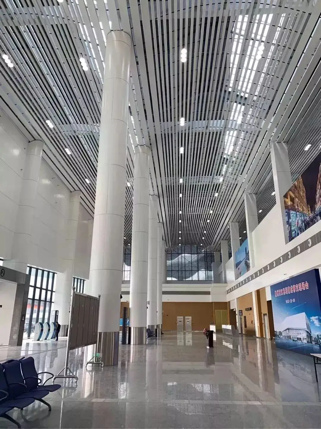 Taiyuan Wusu International Airport Phase III Reconstruction and Expansion Project T3 Terminal Building adopts a three-finger corridor configuration of Dagang Bay + three passages. The building height of the terminal building is 43.725 meters. The total length of the terminal building is about 1497 meters. The main floor is about 342 meters wide and about 120 meters deep. The middle finger corridor is 256 meters long and 50 meters wide. 225 meters, about 40 meters wide. There are 57 fixed-side boarding bridges and 57 near-air positions, including 49 domestic aircraft positions, 6 vertical switchable positions, and 2 horizontal switchable positions.