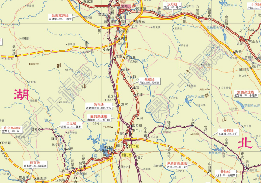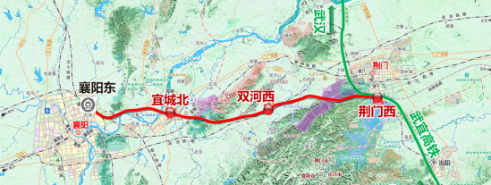 新建襄阳至荆门高速铁路自襄阳东站引出,向南经宜城至沪渝蓉沿江高铁荆门西站,新建线路长116.23公里。全线设襄阳东、宜城北、双河西、荆门西4座车站,其中,襄阳东为既有车站,宜城北、双河西为新建站,荆门西为在建车站。