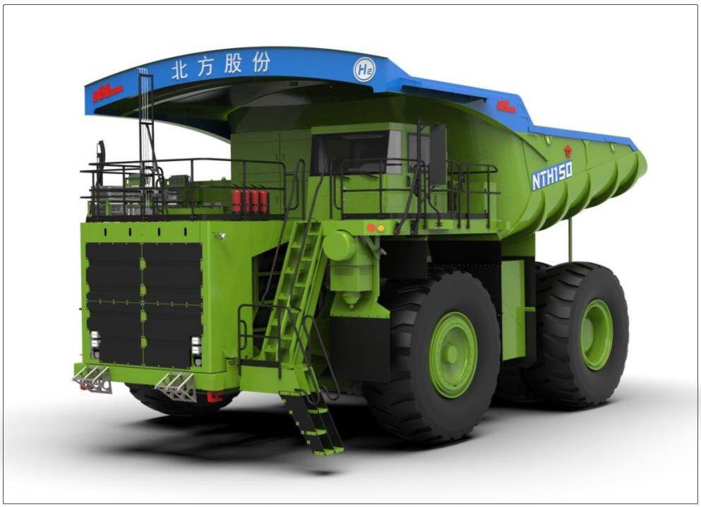在减碳降排及能源革命的大背景下,为响应绿色矿山的建设目标,2022年3月,北重集团北方股份公司与内蒙古电投能源股份有限公司签署合作协议,共同开发百吨级氢燃料与锂电池混合动力矿用自卸车,并计划在南露天煤矿建立包含氢能源矿用车、氢气储运、加注的氢能源矿用车综合应用示范场景。该车型自重115吨,载重136吨,搭载业内领先的质子交换膜燃料电池,搭载70MPa高压大容量车载储氢系统,可保证车辆拥有长久的续航。该车型完全以氢气作为燃料,可实现零排放,与等吨位柴油动力矿用车相比,年减少二氧化碳排放1815吨,约等于600辆乘用车的排放量。