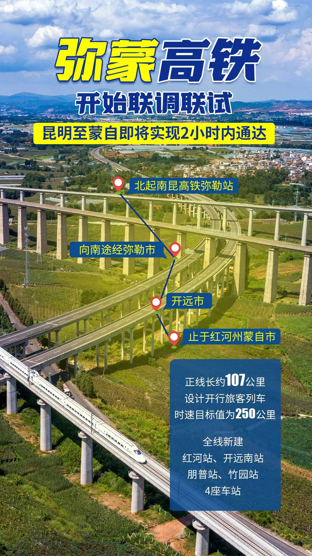 2022年8月24日,云南弥勒至蒙自高铁进入联调联试动态检测阶段,全线开通运营进入倒计时。