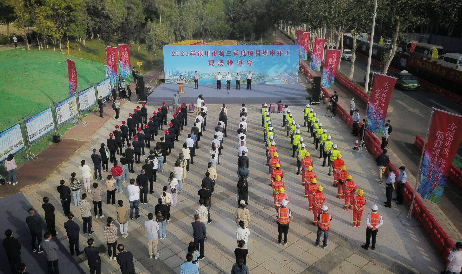 2022年8月25日,银川市第三季度项目集中开工现场推进会在金凤五路(塔渠街-民族街)道路工程建设现场举行。据悉,此次集中开工项目163个,总投资387亿元,年度计划投资86亿元。