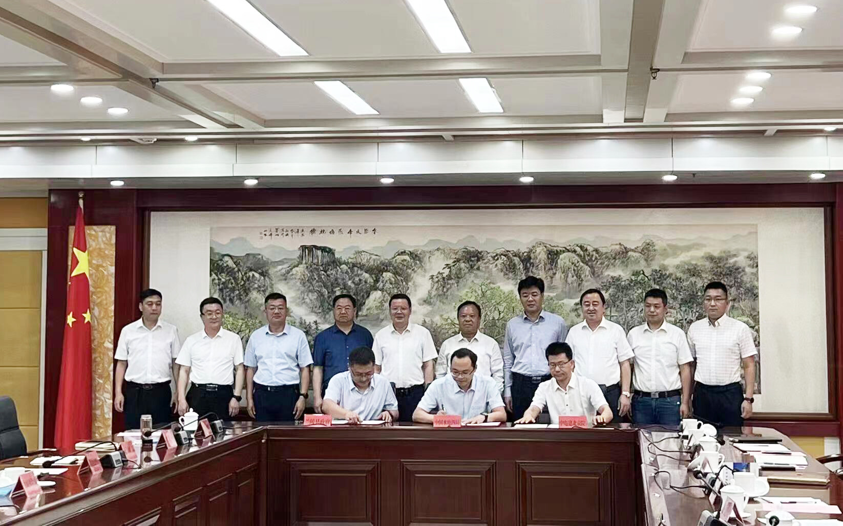 2022年8月24日下午,中国水电四局与山东省临沂市兰陵县人民政府、中国电建北京勘测设计研究院有限公司签署抽水蓄能电站及配套新能源项目合作开发协议。中国水电四局党委书记、董事长徐银林,兰陵县委副书记、县长李春仲,北京院副总经理康建民,中国电建北方区域总部/北方投资公司副总经理李文基,中国水电四局副总经理王雄武共同参加签约仪式。签约仪式由兰陵县委常委、副县长张学超主持。