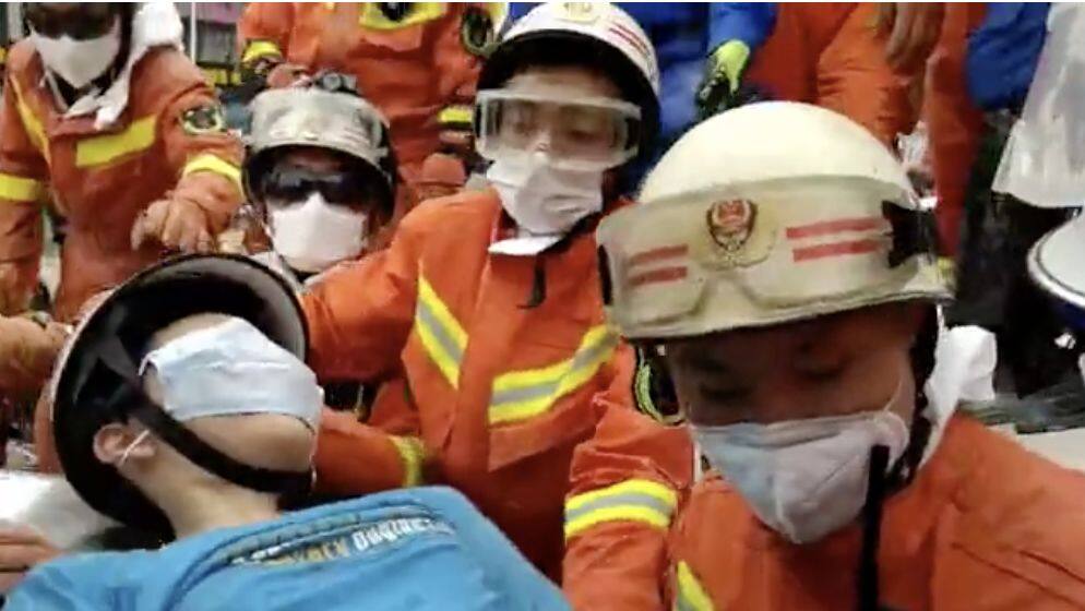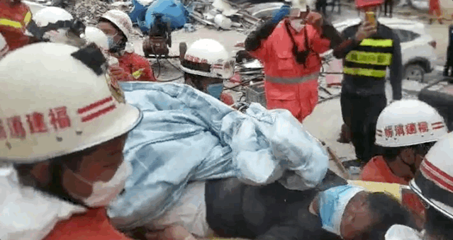救援现场,有一名男子被困废墟下近18小时,40余名消防救援人员轮番作业,在他被困位置的顶部和侧面同时展开救援。在后续的救援中,每10名消防员为一组,轮番徒手作业。在狭小的救援空间中,不超过三分钟救援人员就会满头大汗,而他们在紧张救援的同时,不停为被困人员用细水流降温。8日早上8点13分,该男子被成功救出。男子获救时指着妻子和孩子的方向,反复向消防员强调他们的位置。