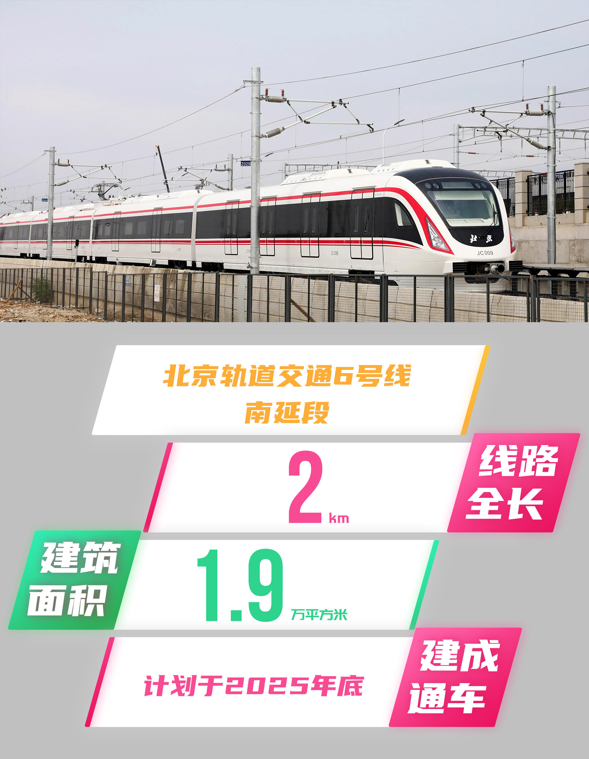 据介绍,北京轨道交通6号线二期(南延段)工程建设内容为一站一区间,线路全长约2公里,车站建筑面积约1.9万平方米,计划于2025年底建成通车。关键词:交通项目建设、基建新闻资讯、国内工程