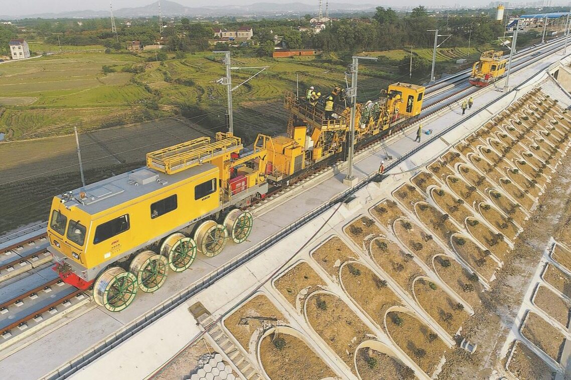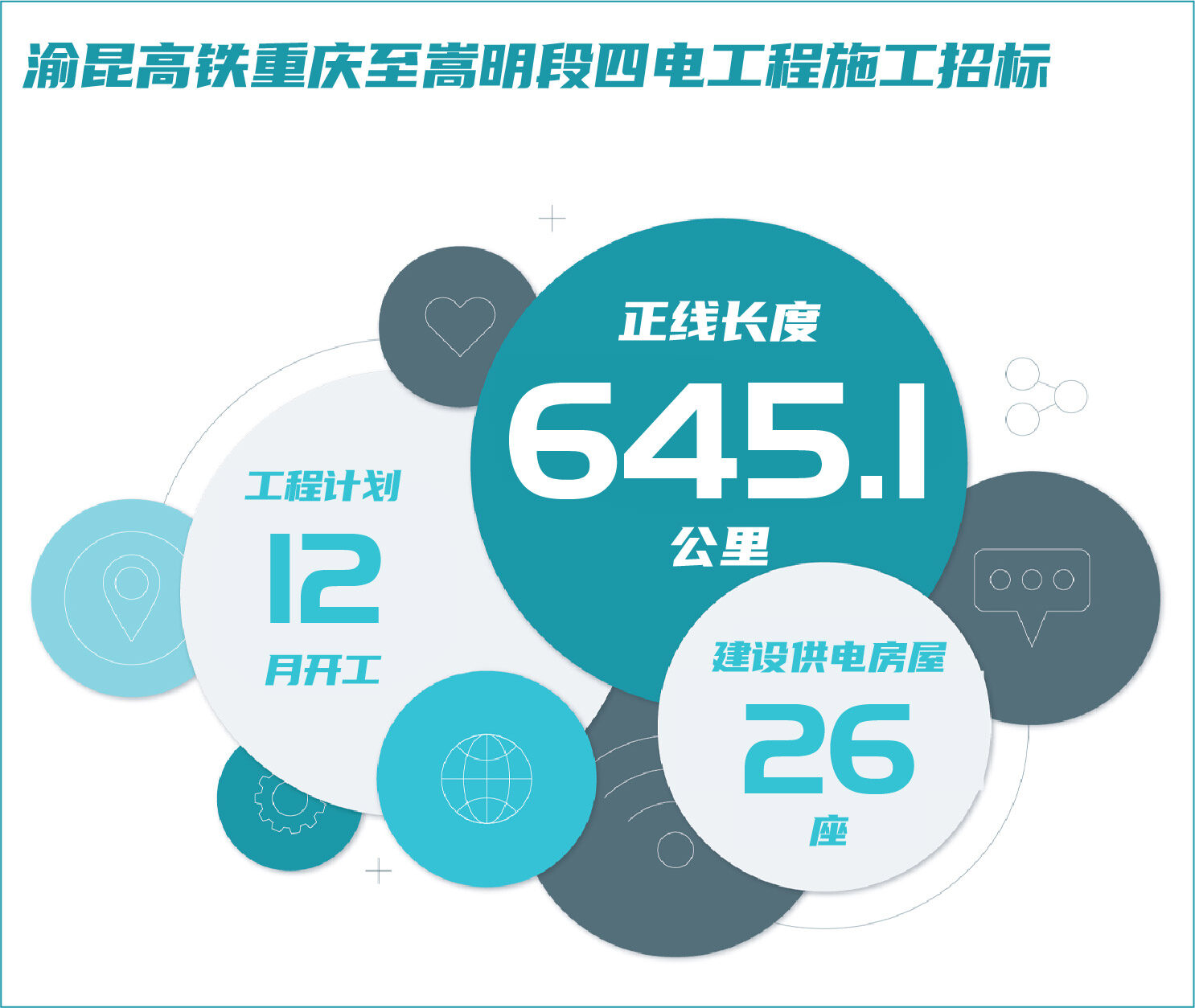四电工程主要工程数量为:通信敷设光电缆约3873.05条公里,信号敷设光电缆约3813.3条公里,电力电缆敷设约4875.78条公里,隧道照明326.072公里,牵引变电所12座,AT分区所14座,AT所25座,接触网架设1642.93条公里,正馈线和保护线3064.06条公里。