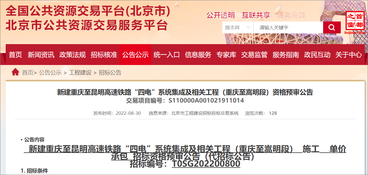 请申请人于2022年09月1日9时00分至2022年09月06日12时00分,登录北京工程建设公共资源交易平台下载电子资格预审文件。资格预审申请文件递交的时间为 2022年09月19日 09时00分至2022年09月19日10时30分,截止时间为2022年09月19日10时30分,地点为北京市建设工程发包承包交易中心。(转载请注明见道网www.seetao.com)见道网工程栏目编辑/赵娥、设计/王霞