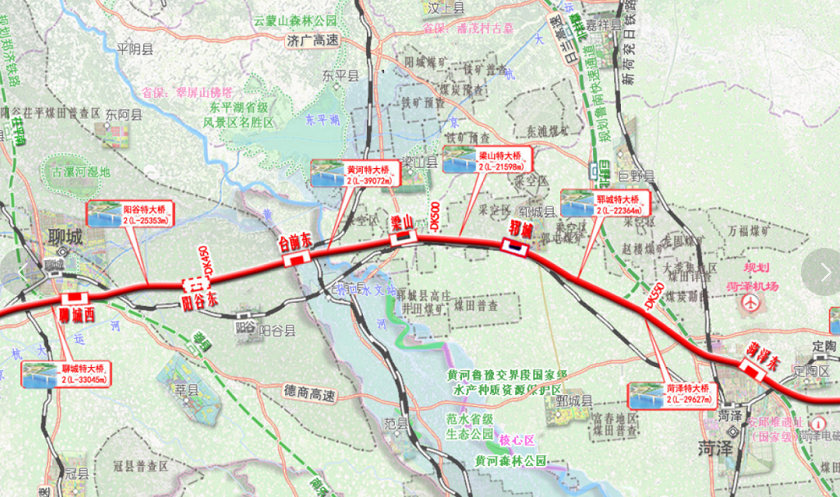 本线线路长度551.97公里,其中中国铁路济南局集团有限公司代建范围26.843公里。