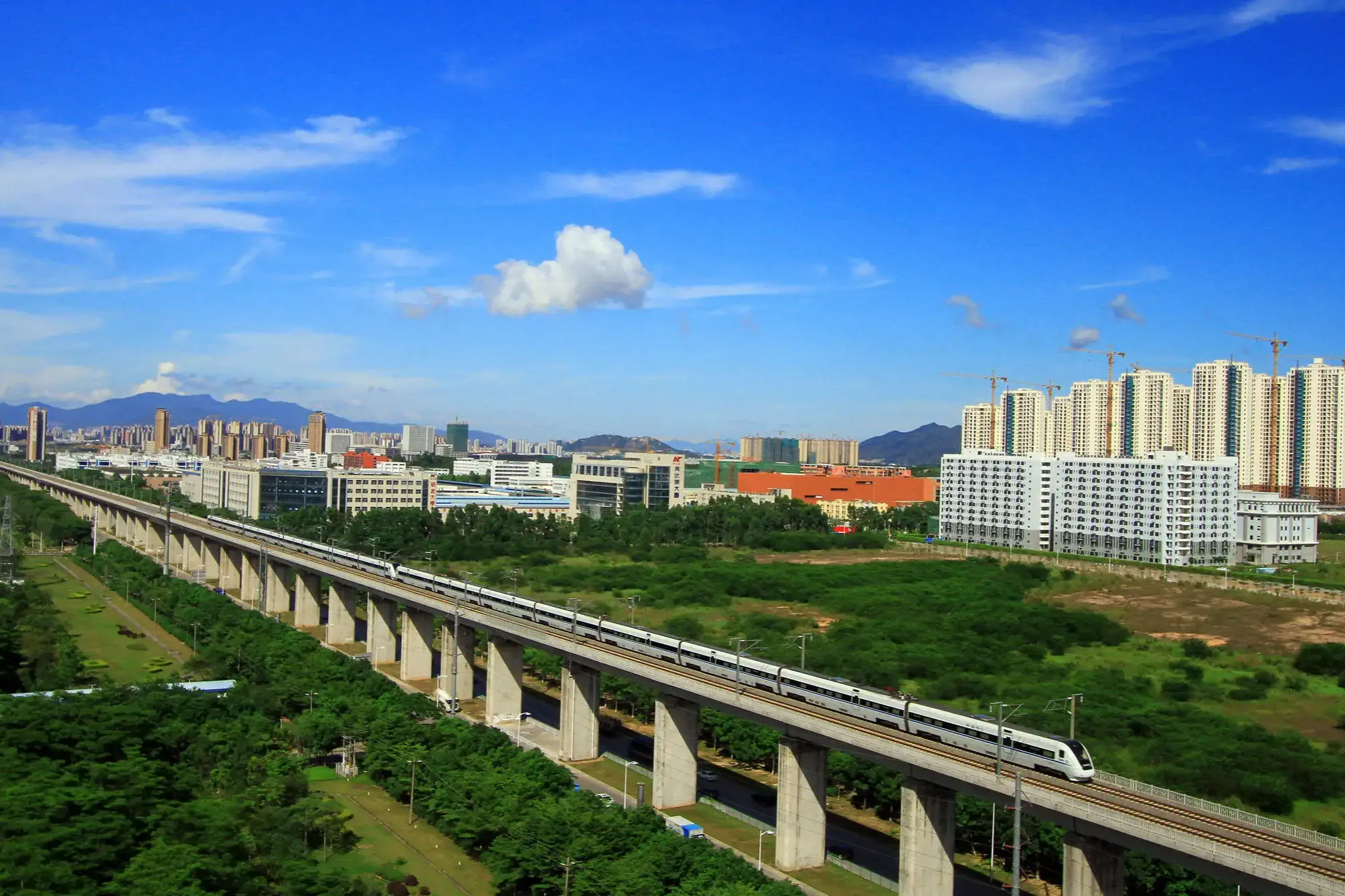 The number of high-speed railway lines: double lines. Design speed: 350 km/h. Maximum slope: 20‰ for general lots. Minimum curve radius: 7,000 meters for general areas and 5,500 meters for difficult areas. The effective length of the arrival and departure line: 650 meters. Traction type: Electric. Train operation control mode: automatic control. Dispatch command method: dispatch centralized.