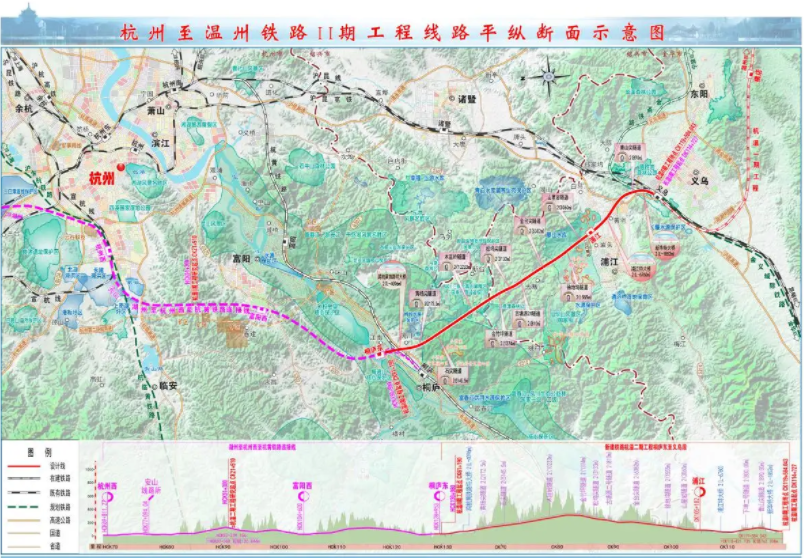 YZSG-3 work area: Ningbo-Zhou Railway DK23+110~DK36+915.62, the new line in the work area is 13.806 kilometers long. YZSG-4 construction area: Ningbo-Zhou Railway DK36+915.62~DK40+033.85, the new line in the construction area is 3.118 kilometers long.