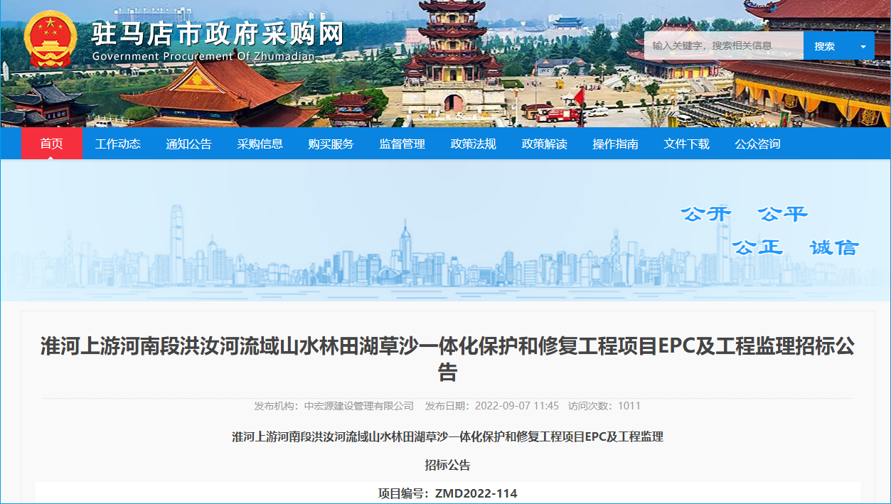 في الآونة الأخيرة ، أصدر مشروع EPC والإشراف الهندسي للحماية المتكاملة والترميم للجبال والأنهار والغابات والحقول والبحيرات والأعشاب والرمال في حوض نهر هونغرو في الروافد العليا لنهر هواي إعلانًا بالمزايدة. المشروع 5.25 مليار يوان.