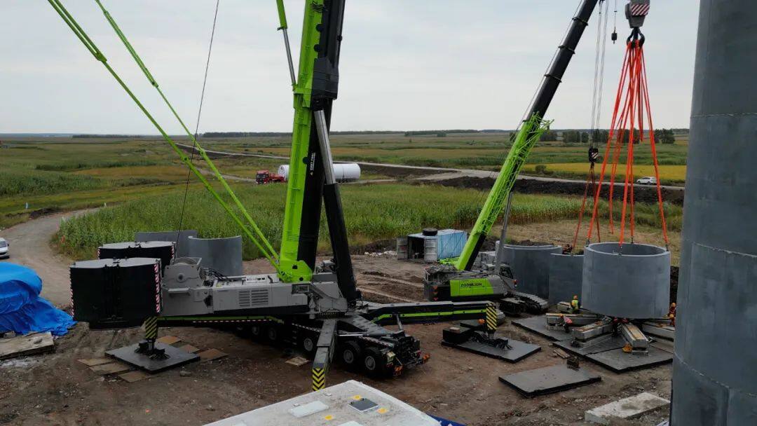 万事开头难。在开工之初由于疫情与极寒天气的干扰,吊装工程进度进展举步维艰。待到天气转暖时,施工地区存在的大片沼泽地形泥泞难行,严重影响了传统履带吊车的运输调度与展开施工,加上开挖沼泽回填山石的大量准备工作更增添了如期完工的难度。而新近投入使用的中联ZAT24000H全地面起重机,则成为了河北昇泰新能源吊装团队一举突破进度瓶颈的助力神器!