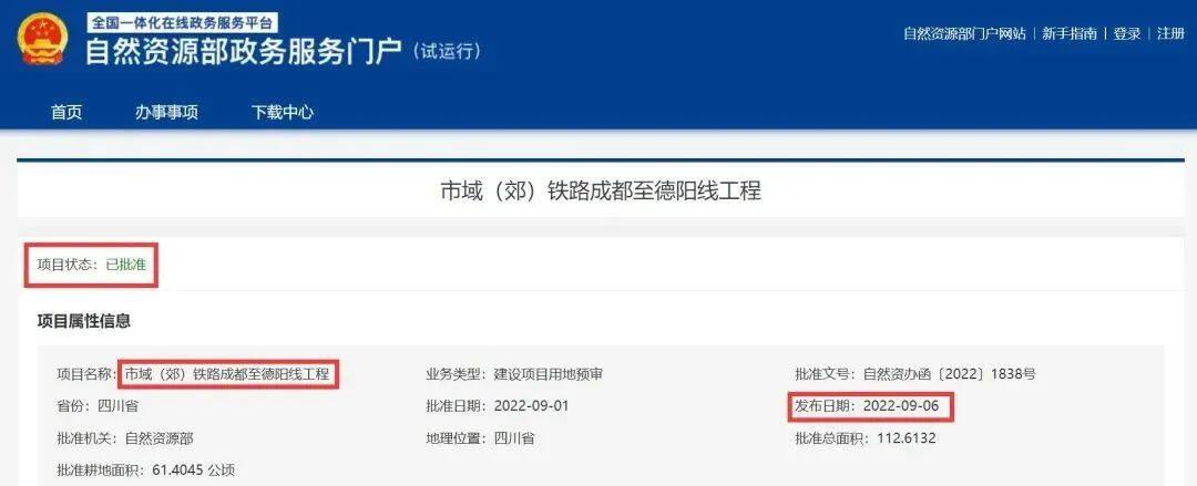 据《自然资源部办公厅关于市域(郊)铁路成都至德阳线工程建设用地预审意见的函》显示: 市域(郊)铁路成都至德阳线工程已列入国家发展改革委2022年中央加大建设用地保障力度的国家重大项目清单。经审查,该项目用地符合规定,原则同意通过用地预审。