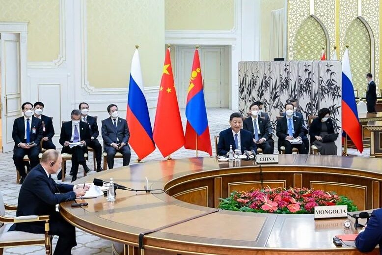 قال بوتين إن التعاون الثلاثي بين روسيا والصين ومنغوليا حقق نتائج ملحوظة وكان ذا طبيعة متبادلة المنفعة ، مما أضاف قيمة مضافة لتنمية العلاقات المتبادلة. وكجيران قريبين ، يجب على الدول الثلاث أن تتفهم وتدعم بعضها البعض ، وأن تعمل على تعزيز التعاون الثلاثي بشكل شامل ودفعه إلى الأمام. يجب تشجيع رواد الأعمال من الدول الثلاث ودعمهم لتعزيز التبادلات والتعاون ، وتعزيز المزيد من التقدم الجوهري في التعاون في مجالات النقل واللوجستيات والنقل عبر الحدود والطاقة والتكنولوجيا الفائقة والسياحة والشعوب. والمشاركة الثقافية.