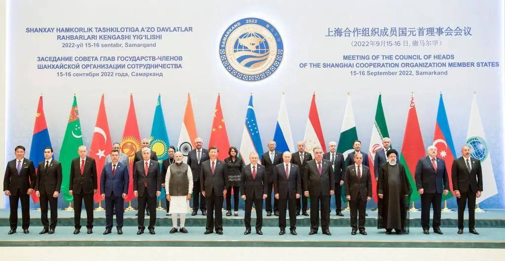Group photo of the participants of the Council of Heads of State of the Shanghai Cooperation Organization Member States