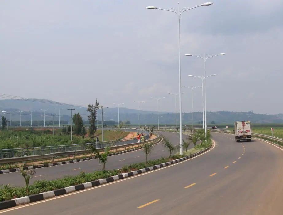 在卢旺达工作10年的项目经理田冲介绍,这条路从一条双向两车道的城镇道路升级改造为双向四车道,部分路段达到了双向六车道。