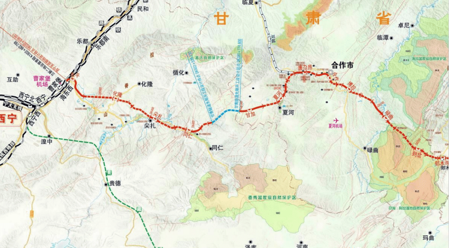 新建西宁至成都铁路线路北起青海省省会西宁市, 接入在建成兰铁路黄胜关站;与成兰铁路共线引入成都枢纽。线路全长824.72km,四川省段新建长度169.261km,主要工程:桥梁总长64.783km/62座、隧道41.678km/14座,新设花湖、阿西、若尔盖、班佑、红原共5个站,引入既有成兰铁路黄胜关站。本线主要技术标准为:铁路等级:Ⅰ级;正线数目:双线;旅客列车设计行车速度:200公里/小时,郎木寺至红原段预留提速至250公里/小时平面条件。最小平面曲线半径:一般地段3500米,困难地段28O0米。限制坡度:25‰。牵引种类:电力牵引。牵引质量:1500吨。到发线有效长度:650米。列车运行控制方式:CTCS-2列控系统。闭塞类型:自动闭塞。