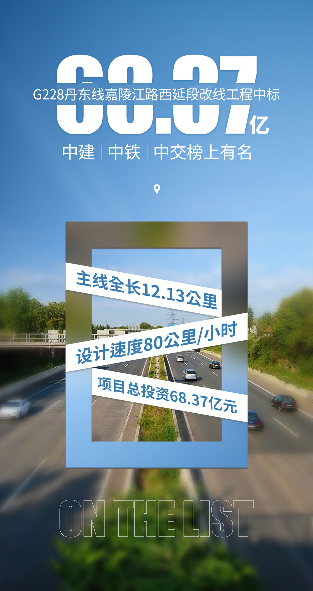 2022年09月22日,中国政府采购网发布G228丹东线嘉陵江路西延段改线工程PPP项目预中标结果公示,项目由中建、中铁、中交联合体中标,项目总投资68.37亿元。