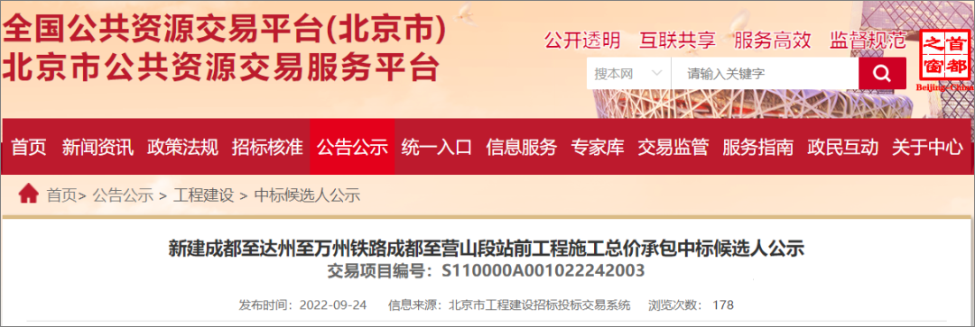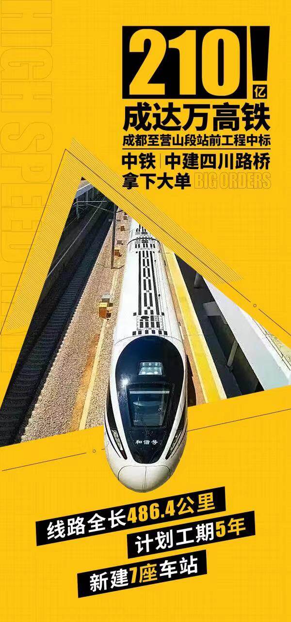 2022年9月24日,新建成都至达州至万州铁路成都至营山段站前工程施工总价承包中标候选人公示发布。成达万高铁项目将于10月正式开工建设,计划工期5年,项目总投资约210亿元。