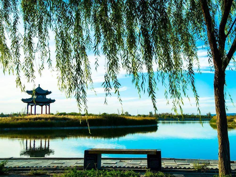 这里是西北最大的湿地公园之一,春有鸟迁,夏有荷花,秋天芦苇金黄飘荡,冬天雪飘冰封万里