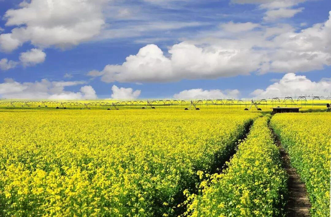 金黄色的油菜花田,碧绿的祁连草原,散落的白色毡房,蓝天白云下,呈现一幅幸福安乐的美好图卷