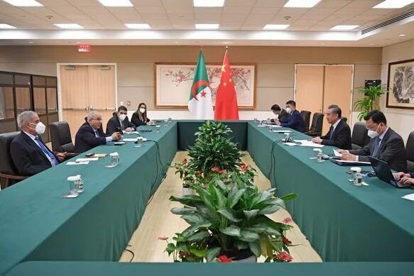 2022年9月24日,国务委员兼外长王毅在纽约出席联合国大会期间会见阿尔及利亚外长拉马拉。