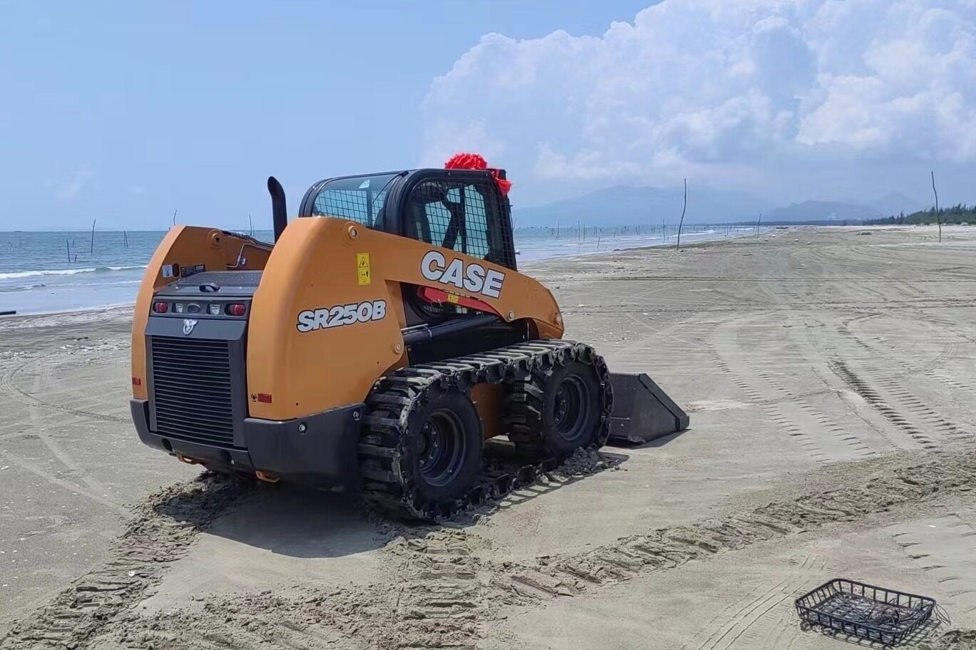 充分了解用户需求后,凯斯工程师为这台SR250B加装了钢制履带。这样既保证了松软土质的接地比压,还兼备了轮式滑移的灵活机动。看到机主交机时在沙滩上毫无阻滞地起舞,相信不远的将来它会成为这片沙滩“最靓的仔”。