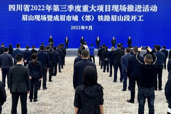 2022年9月26日上午,在四川省第三季度重大项目现场推进活动上,市域(郊)铁路成都至眉山线项目宣布开工,项目建设期51个月,预计2026年底完工。据悉,此次开工分别在成眉市域铁路S5线上的成都秦皇寺站、眉山视高站同步启动。