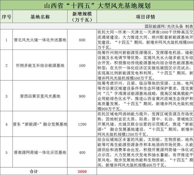其中,青海、内蒙古、山西三省提出了风光大基地建设的具体项目,规模共计128.58GW。青海共规划14个大型风光基地,已明确新增规模38.58GW,累计规模62.25GW;内蒙古共规划12个大型风光基地,已明确规模52GW;山西共规划5个大型风光基地,已明确规模38GW。(转载请注明见道网www.seetao.com)见道网战略栏目编辑/许生鹏