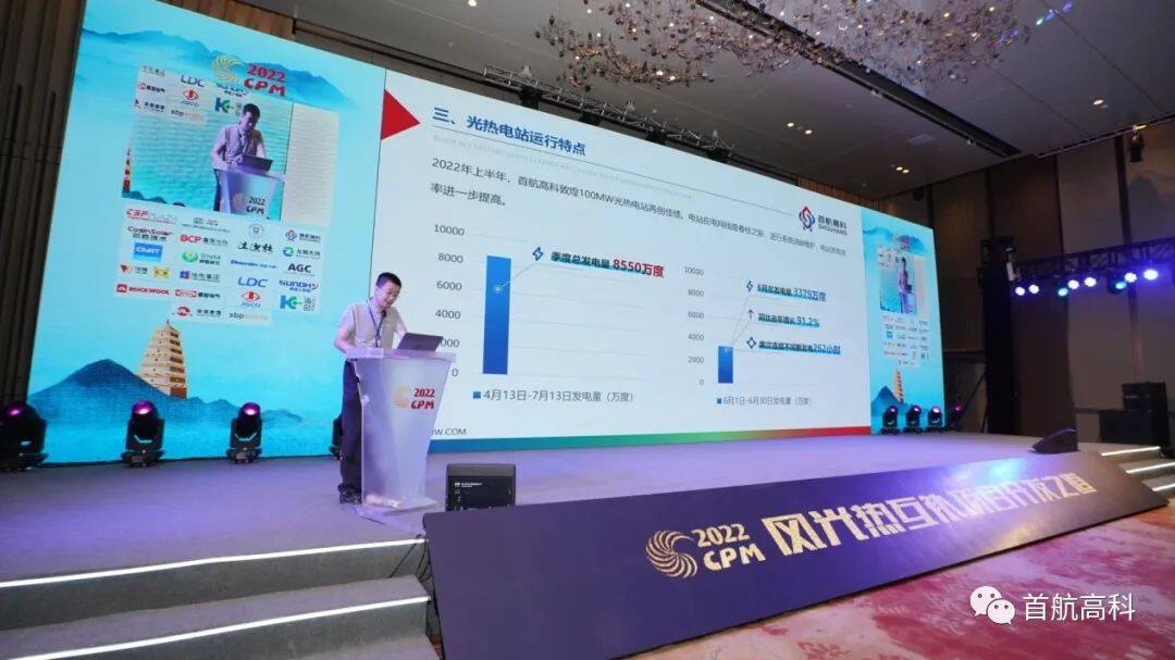 Hui Chao, deputy general manager of Shouhang Hi-Tech, made a keynote report on "Analysis and Suggestions on Configuration of Multi-Energy Complementary, Photovoltaic + Solar Thermal Projects" at the 2022 China Wind-Solar Complementary New Energy Base Development Conference.
