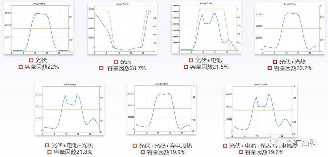 From the perspective of combination, the capacity factor of CSP station can reach 28.7%, which is the highest. With the increase of the combination method, the combination of photovoltaic + battery + solar thermal + power abandonment, the capacity factor is only 19.6% in the comparison of these schemes. It shows that the more the combination is, the more the regulating ability that does not generate electricity itself participates, the capacity factor of the whole system is decreasing, and the decrease of the capacity factor also means that the benefit of the whole combination is decreasing.