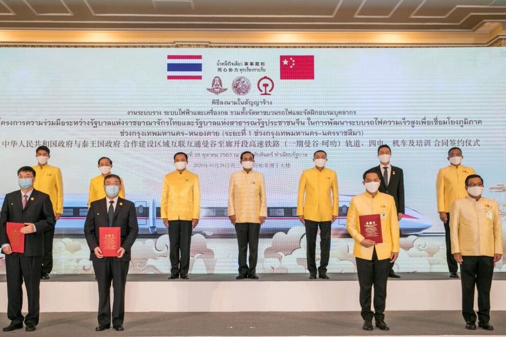作为中泰两国共建一带一路的重点项目及泰国首条标准轨高速铁路,中泰铁路采用中国标准设计建造,一期工程连接曼谷和呵叻,二期工程将延伸至东北边贸重镇廊开,此处与老挝首都万象仅一河之隔,将实现与中老铁路衔接,经老挝磨丁和中国磨憨可以抵达昆明。
