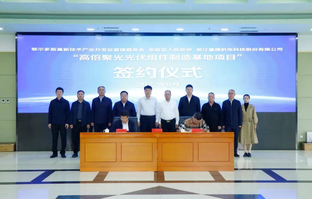 2022年9月26日,由鄂尔多斯高新技术产业开发区管委会、东胜区人民政府、浙江星煜机电科技股份有限公司共同主办的高倍聚光光伏组件制造基地项目签约仪式在东胜区举行。