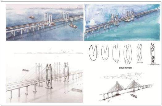 泉州湾跨海大桥手绘图及方案构思演变