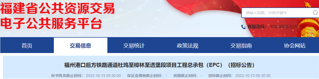 近日,福州港口后方铁路通道杜坞至樟林至透堡段项目工程总承包招标公告发布,项目年内将正式开工建设,本项目总投资约为84亿元。